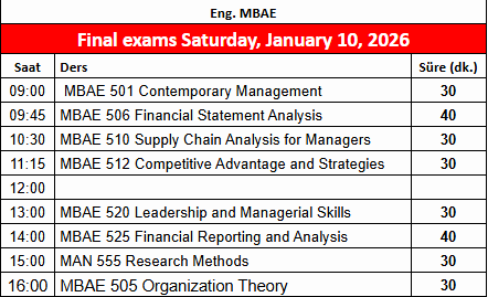 İşletme Yönetimi Yüksek Lisans Programı (İng.)